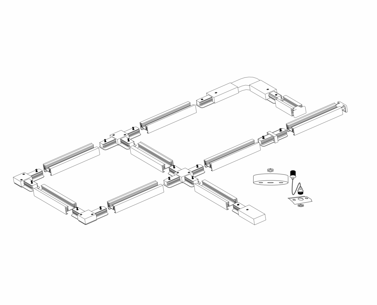 Трек может быть использован для накладного или подвесного монтажа с соответствующим комплектом крепежа. Устанавливается на любую поверхность после окончания всех отделочных работ.