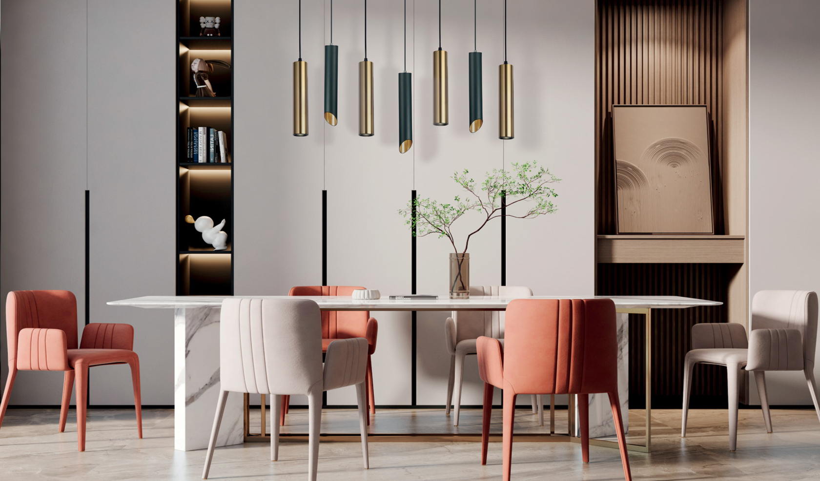 Подвесные трековые светильники в форме цилиндра. Доступно 2 варианта цвета: черный/золото и белый/золото