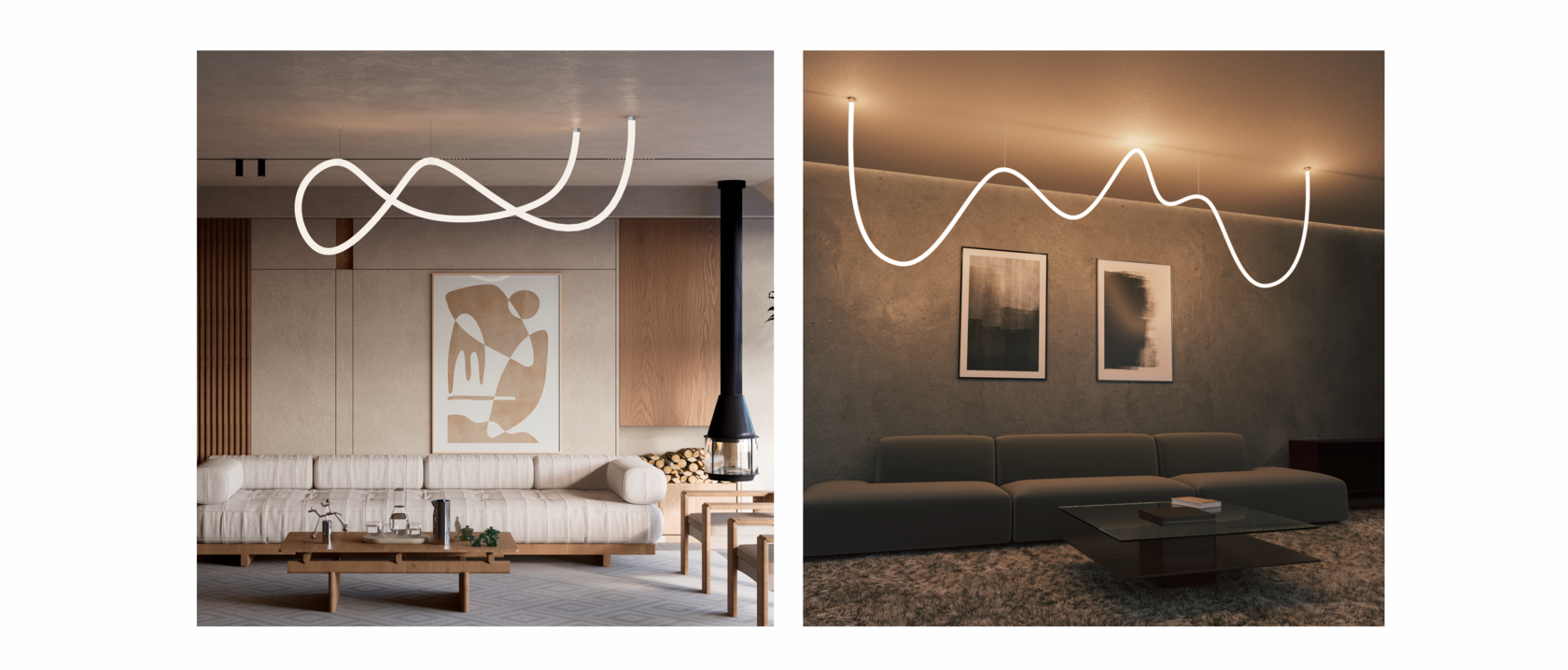 NEON — это система на основе гибкого герметичного корпуса и светодиодной ленты, при помощи которой можно создавать различные декоративные, концептуальные композиции с равномерным освещением с углом рассеивания 360°.